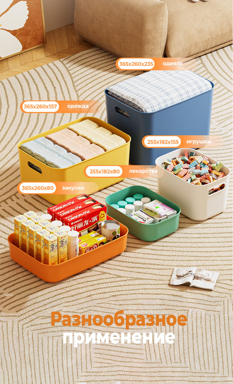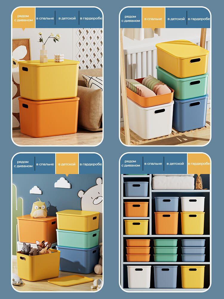 Пластиковый контейнер можно вкладывать один в другой без крышки для компактного хранения. Он отлично подходит для хранения одежды, игрушек, документов, бытовых принадлежностей и других вещей, обеспечивая порядок в доме, офисе или на складе.